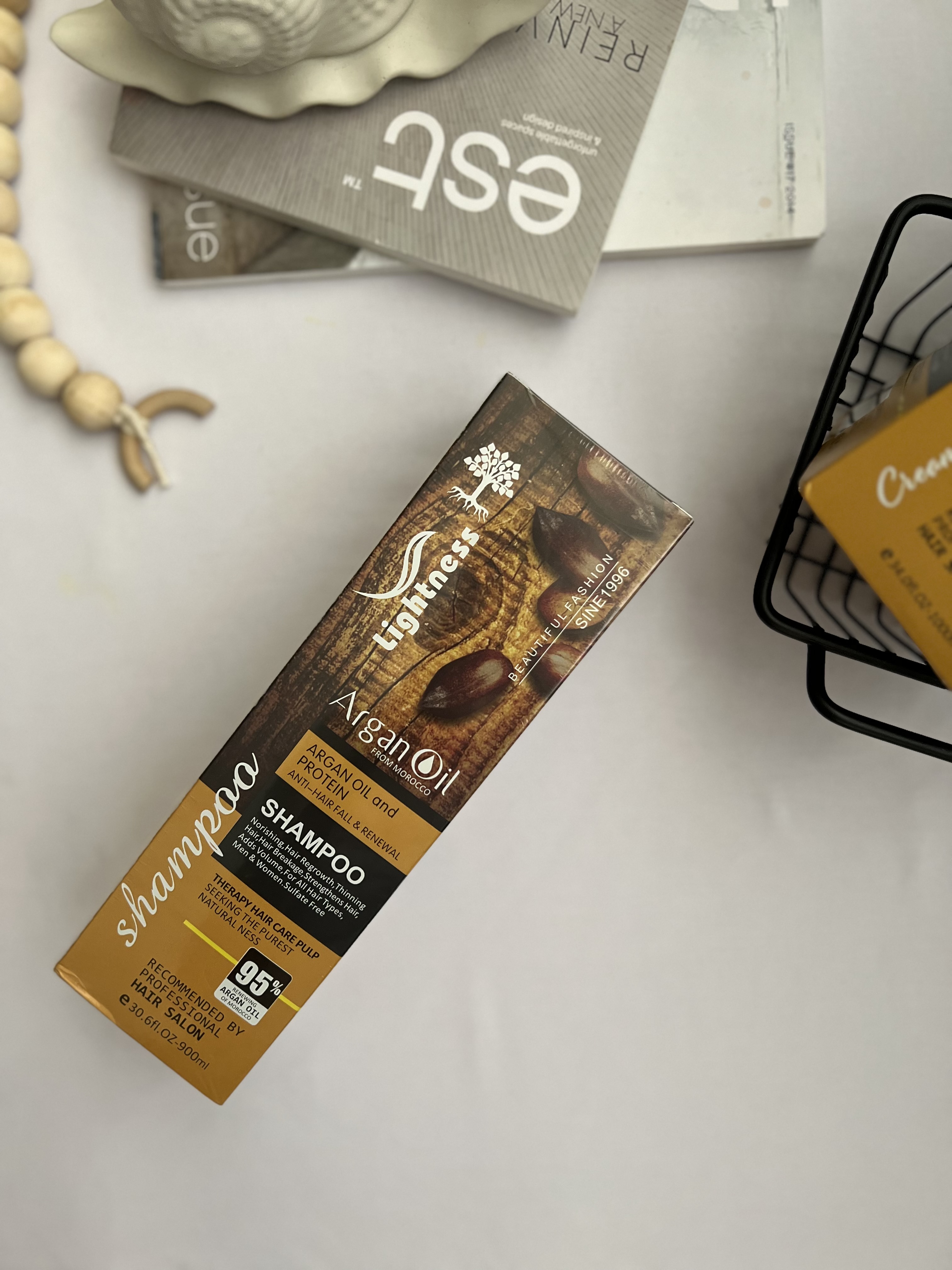 شامپو لایتنس حاوی۹۵% روغن ارگان و ابریشم مایع میباشد که تغذیه کننده و رطوبت رسان موها بوده و سبب تقویت، ترمیم و درخشندگی موهامیشود.